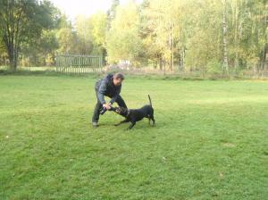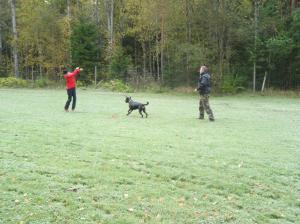 Lek under skottprovet.Inga problem med skotten, full lek med trasan.